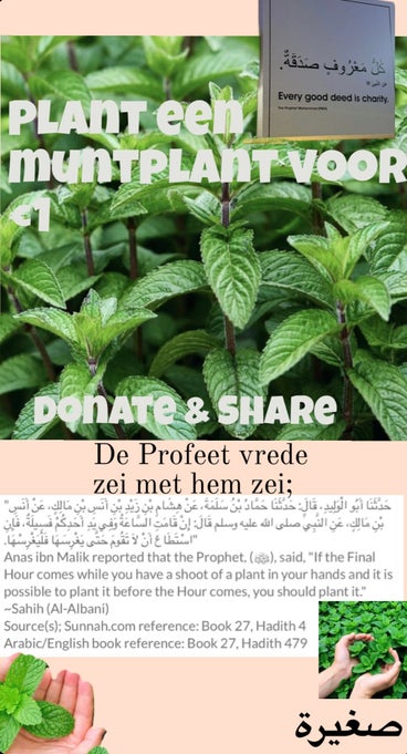 Wij zamelen geld in om muntplanten te planten in Nederland en deze uit te delen aan onze oudere broeders & zusters zodat zij hiervan kunnen genieten en bijvoorbeeld thee kunnen maken etc.